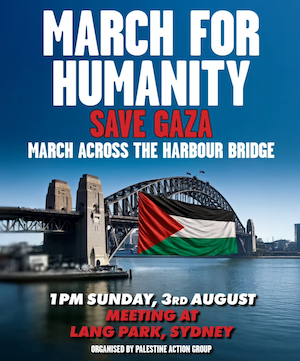 The march – that aims to cross the Sydney Harbour Bridge – seeks to draw attention to the deliberate starvation of over 2 million Gazans, and to call on governments, including our own, to take a stand against what many, including UN experts, are identifying as genocide.